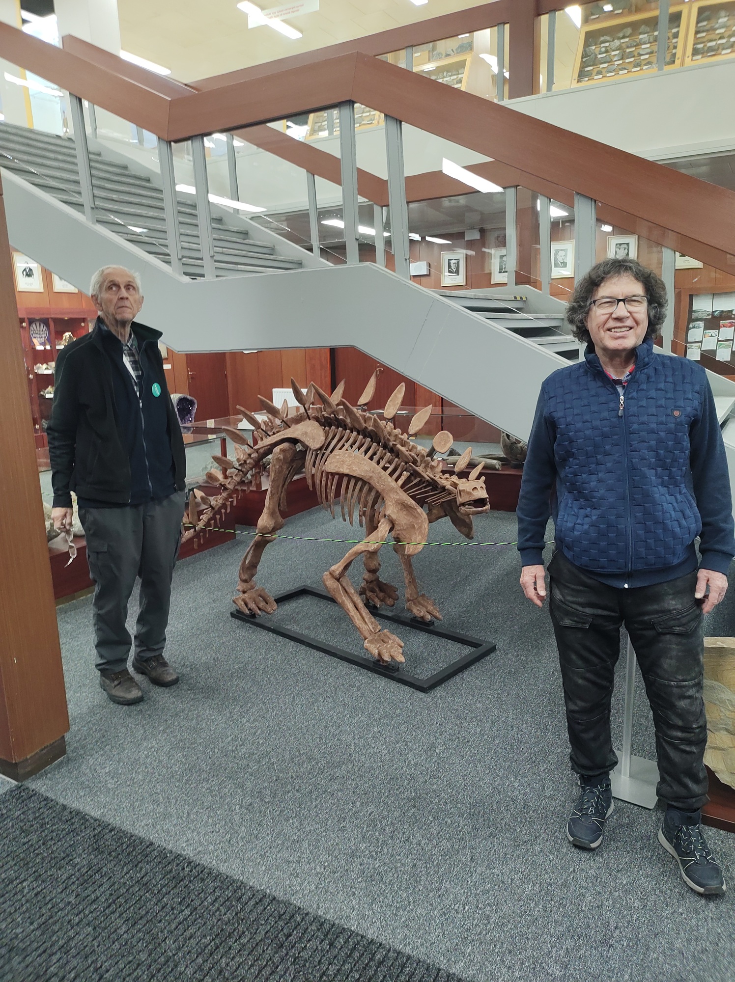 Další otevřené dveře nás vítaly v Ekonomické fakultě, kde bylo o něco klidněji. Následně jsme se pak přesunuli celí utrmácení do mineralogického pavilonu prof. Pošepného, kde nás skoro zahlušilo božské ticho umocňované miliony let starými minerály a také modely dinosaurů Stegosaurus a Tyranosaurus rex. Zde jsme si trochu odpočinuli, poklábosili a zavzpomínali.